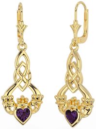 Alexandrite Gold Celtic Claddagh Dangle Earrings