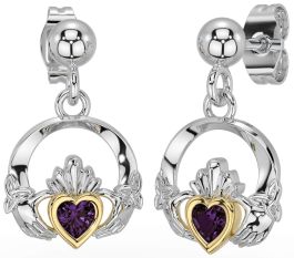 Alexandrite Gold Silver Celtic Claddagh Trinity Knot Dangle Earrings
