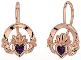 Alexandrite Rose Gold Claddagh Celtic Trinity Knot Dangle Earrings