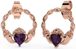 Alexandrite Rose Gold Silver Celtic Claddagh Trinity Knot Stud Earrings