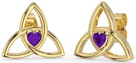 Amethyst Gold Celtic Trinity Knot Stud Earrings