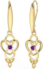 Amethyst Gold Silver Infinity Celtic Trinity Knot Dangle Earrings