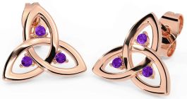 Amethyst Rose Gold Celtic Trinity Knot Stud Earrings