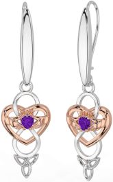 Amethyst Rose Gold Silver Celtic Claddagh Infinity Trinity Knot Dangle Earrings