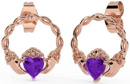 Amethyst Rose Gold Silver Celtic Claddagh Trinity Knot Stud Earrings
