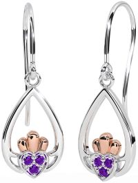 Amethyst Rose Gold Silver Claddagh Dangle Earrings