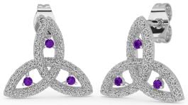 Amethyst Silver Celtic Trinity Knot Stud Earrings