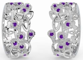 Amethyst White Gold Shamrock Celtic Trinity Knot Stud Earrings