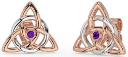 Amethyst White Rose Gold Celtic Trinity Knot Stud Earrings