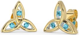 Aquamarine Gold Celtic Trinity Knot Stud Earrings