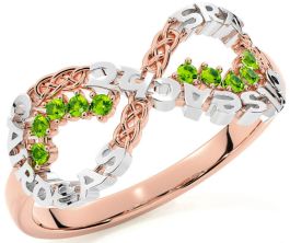 Peridot White Rose Gold Celtic Infinity Irish "Love, Loyalty, & Friendship" Ring