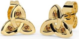 Citrine Gold Silver Celtic Trinity Knot Stud Earrings