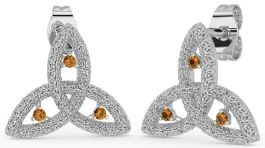 Citrine White Gold Celtic Trinity Knot Stud Earrings
