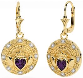 Diamond Alexandrite Gold Silver Celtic Claddagh Dangle Earrings