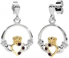 Diamond Alexandrite Gold Silver Claddagh Dangle Earrings