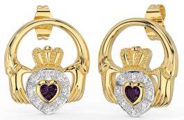 Diamond Alexandrite Gold Silver Claddagh Dangle Earrings