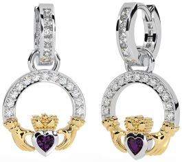 Diamond Alexandrite Gold Silver Claddagh Dangle Earrings