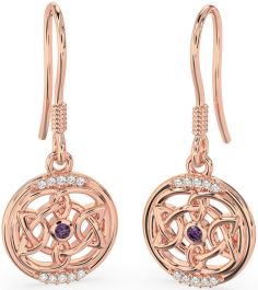 Diamond Alexandrite Rose Gold Silver Celtic Dangle Earrings