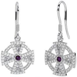 Diamond Alexandrite White Gold Celtic Cross Dangle Earrings