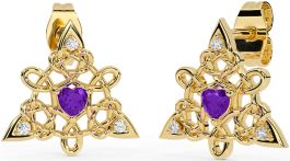 Diamond Amethyst Gold Silver Celtic Trinity Knot Stud Earrings