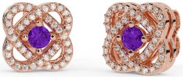 Diamond Amethyst Rose Gold Celtic Stud Earrings