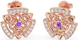 Diamond Amethyst Rose Gold Celtic Stud Earrings