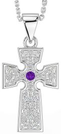 Diamond Amethyst Silver Celtic Cross Necklace
