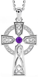Diamond Amethyst Silver Celtic Cross Necklace