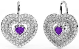 Diamond Amethyst Silver Celtic Trinity Knot Heart Dangle Earrings