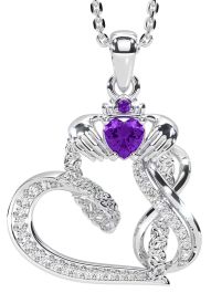 Diamond Amethyst Silver Claddagh Infinity Trinity knot Necklace
