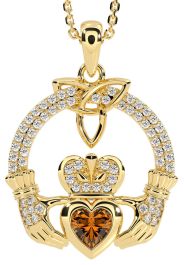 Diamond Citrine Gold Claddagh Trinity knot Necklace