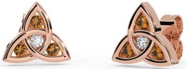Diamond Citrine Rose Gold Silver Celtic Trinity Knot Stud Earrings