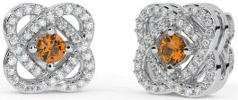 Diamond Citrine Silver Celtic Stud Earrings