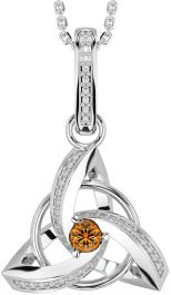 Diamond Citrine Silver Celtic Trinity Knot Necklace