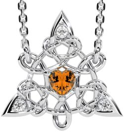 Diamond Citrine Silver Celtic Trinity Knot Necklace
