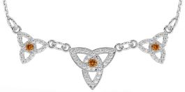 Diamond Citrine Silver Celtic Trinity Knot Necklace