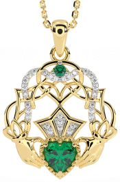 Diamond Emerald Gold Celtic Claddagh Necklace
