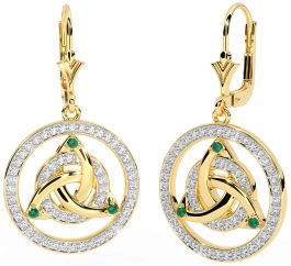 Diamond Emerald Gold Celtic Trinity Knot Dangle Earrings