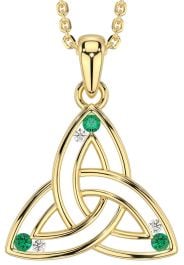Diamond Emerald Gold Celtic Trinity Knot Necklace