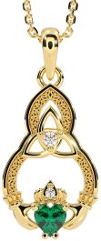 Diamond Emerald Gold Claddagh Celtic Trinity Knot Necklace