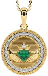 Diamond Emerald Gold Claddagh Celtic Trinity Knot Necklace