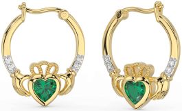 Diamond Emerald Gold Claddagh Hoop Earrings