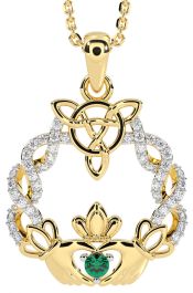 Diamond Emerald Gold Silver Celtic Claddagh Necklace