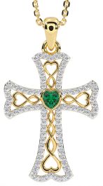 Diamond Emerald Gold Silver Celtic Cross Necklace