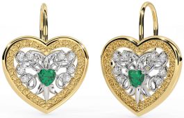 Diamond Emerald Gold Silver Celtic Heart Dangle Earrings