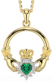 Diamond Emerald Gold Silver Claddagh Necklace