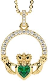 Diamond Emerald Gold Silver Claddagh Necklace