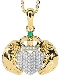 Diamond Emerald Gold Silver Claddagh Necklace
