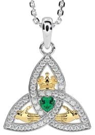 Diamond Emerald Gold Silver Claddagh Trinity knot Necklace