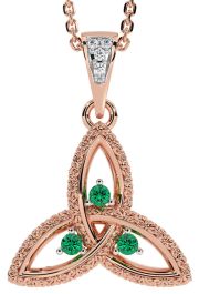 Diamond Emerald Rose Gold Celtic Trinity Knot Necklace